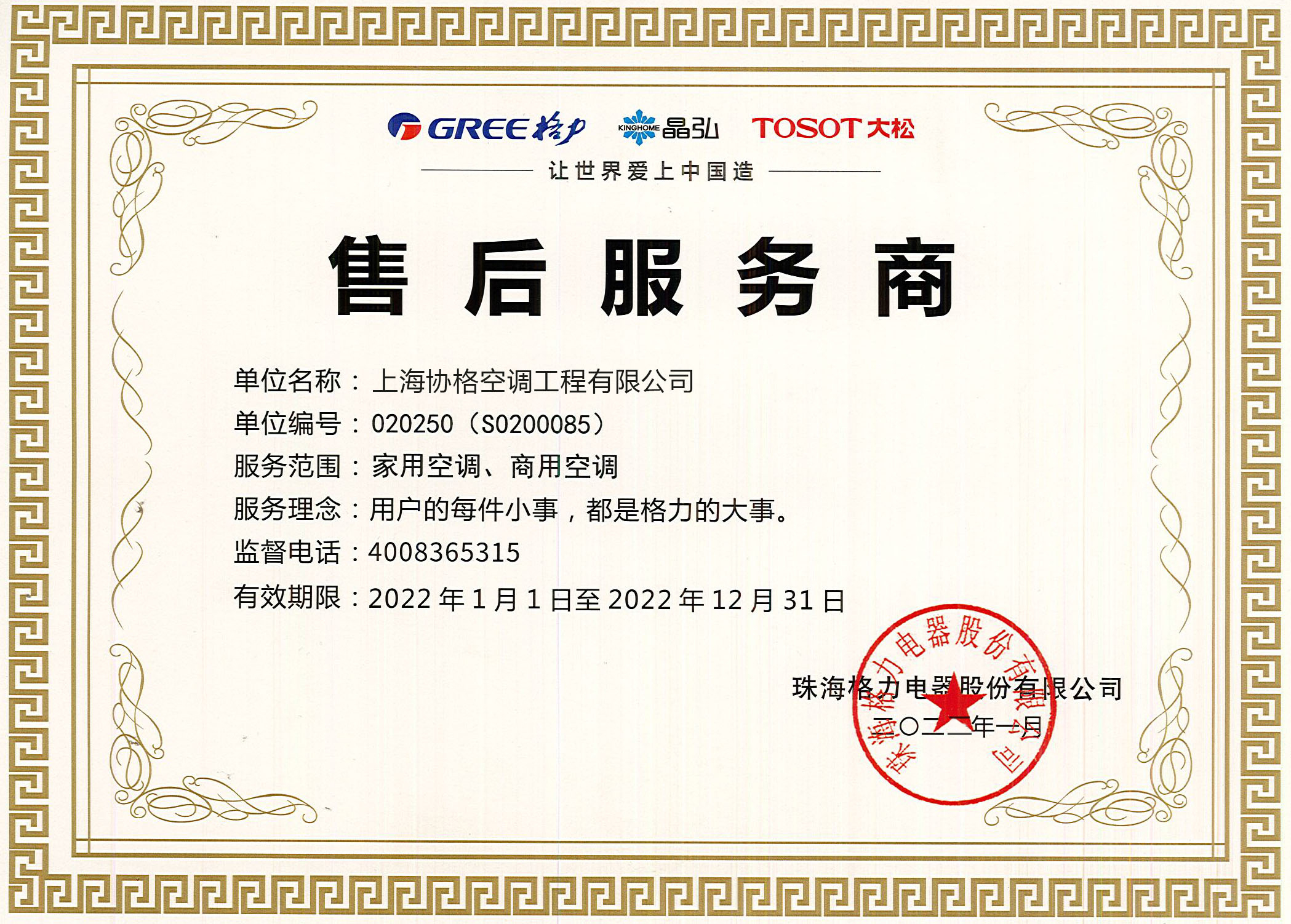 上海協(xié)格機電科技股份有限公司于2003年成立,是一家專業(yè)從事空調設計、銷售、安裝、維修、保養(yǎng)為一體的家用和商用空調專業(yè)公司。是格力空調上海地區(qū)的特約經(jīng)銷商和技術服務中心,是上海市家用電器安裝、維修以及資質企業(yè)。公司擁有暖通技術、高級工程師、工程安裝等多方面專業(yè)人才。公司常年以來堅持客戶利益至上的原則,設計、選材、安裝,力求精益求精,是上海地區(qū)格力授權服務商。